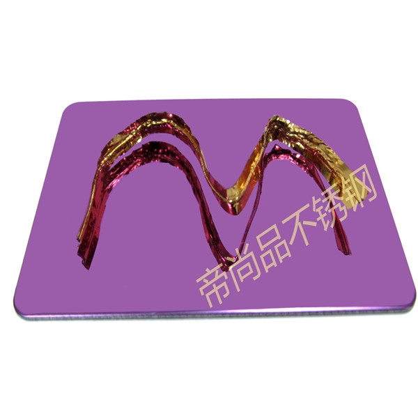 彩色不銹鋼鏡面板可供廣大用戶選擇的顏色有:淺金黃色,鈦金,寶石藍,黑色,咖啡色,香檳金,鋯金色,青銅色,玫瑰金,古銅,翡翠綠,紫紅。