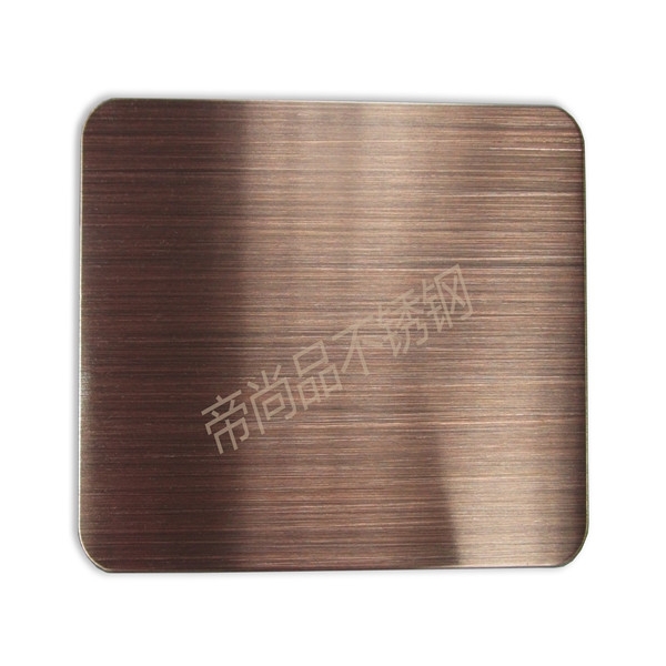 (1)采用德國先進水鍍技術(shù),使不銹鋼表面鍍上一定厚度的真紫銅,紅銅,黃銅。達到能做舊拉絲仿古高端裝飾,解決了以往銅鋼復(fù)合板材料由高分子膜復(fù)合易分離、起泡的缺點。