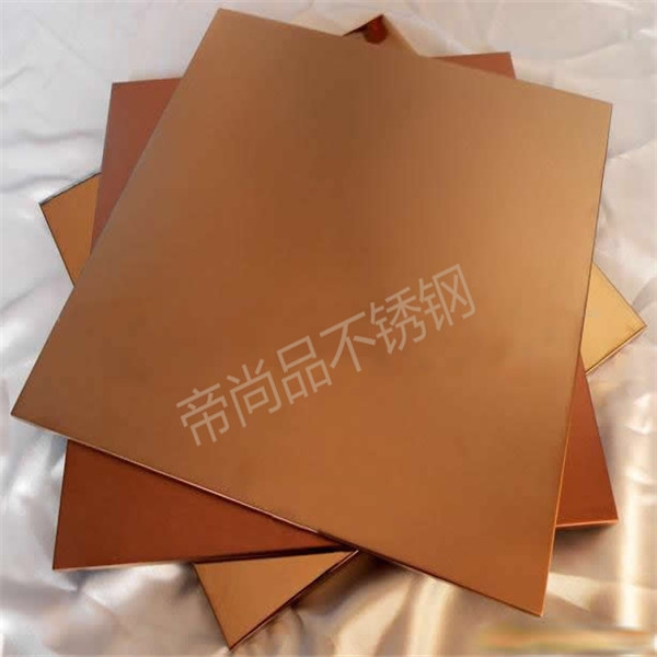 1)采用德國先進(jìn)水鍍技術(shù),使不銹鋼表面鍍上一定厚度的真紫銅,紅銅,黃銅。達(dá)到能做舊拉絲仿古高端裝飾,解決了以往銅鋼復(fù)合板材料由高分子膜復(fù)合易分離、起泡的缺點(diǎn)。