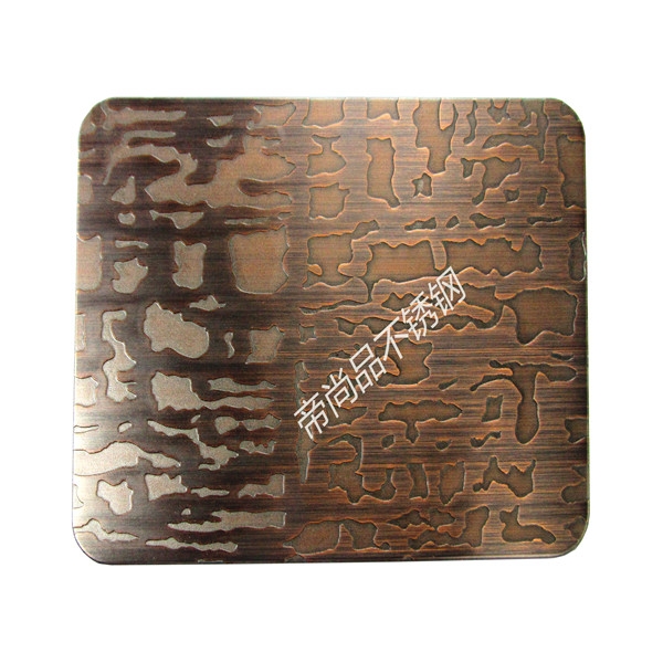 (1)采用德國(guó)先進(jìn)水鍍技術(shù),使不銹鋼表面鍍上一定厚度的真紫銅,紅銅,黃銅。達(dá)到能做舊拉絲仿古高端裝飾,解決了以往銅鋼復(fù)合板材料由高分子膜復(fù)合易分離、起泡的缺點(diǎn)。