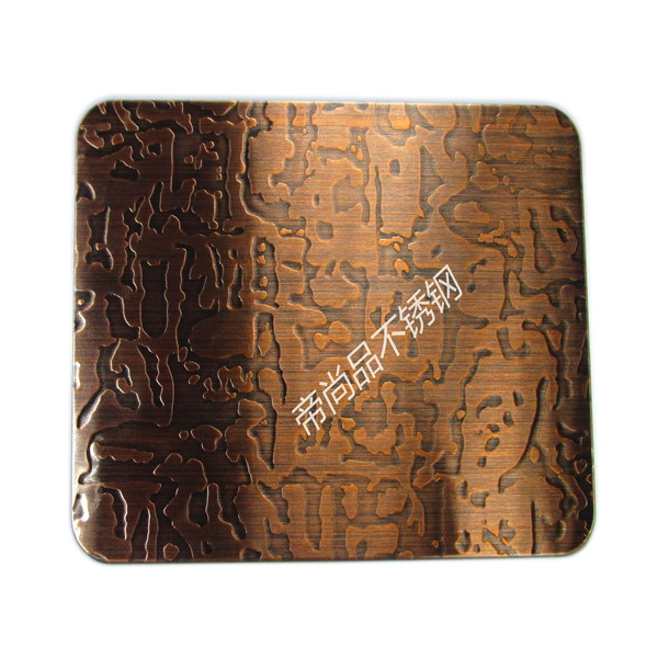 (1)采用德國先進(jìn)水鍍技術(shù),使不銹鋼表面鍍上一定厚度的真紫銅,紅銅,黃銅。達(dá)到能做舊拉絲仿古高端裝飾,解決了以往銅鋼復(fù)合板材料由高分子膜復(fù)合易分離、起泡的缺點。
